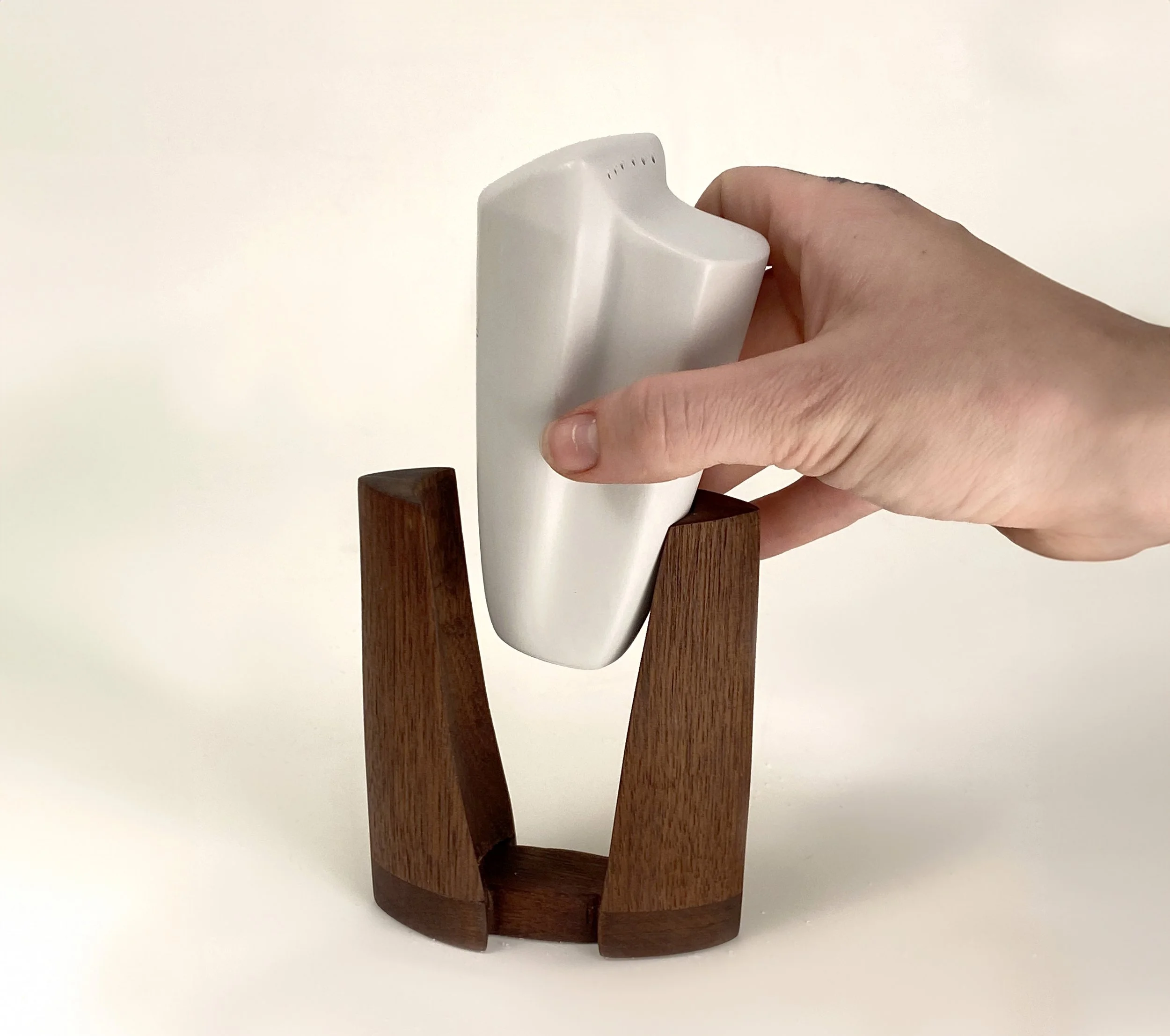 The Ruuv salt shaker. Design a functional and innovative saltshaker. Timeline: 6 weeks Lathe woodturning 3D printing CAD surface modeling prototype surface finishing The process.